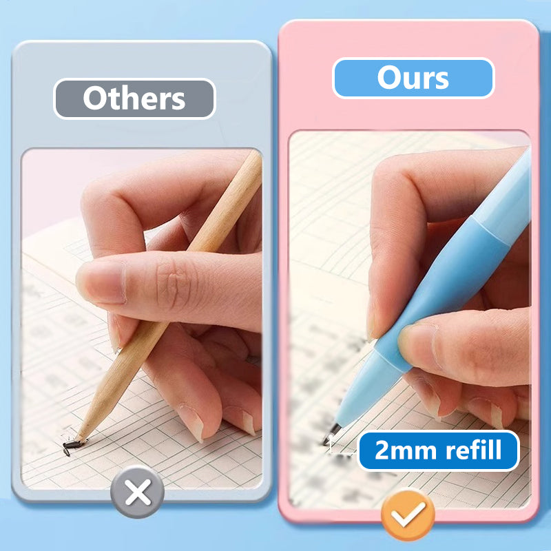 SUPERSTARK 2MM TJOCKARE BLYERTSPENNA - Säg adjö till trasiga spetsar! Med 2 mm tjockare stift skapar denna penna djärva linjer som sticker ut från sidan. Oavsett om du färglägger din favoritbild eller gör anteckningar, kommer ditt skrivande alltid att se fantastiskt och tydligt ut!