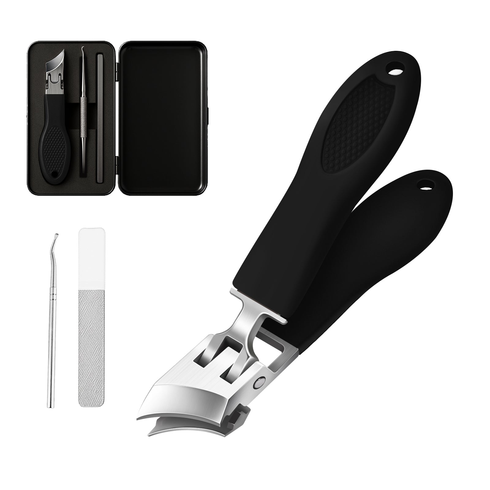 Sluta oroa dig för nagelklipp som flyger överallt. Vår innovativa stänkskyddade design håller skräpet inne, medan den robusta metallskäraren kan sköljas under rinnande vatten för snabb hygienisk underhåll.
