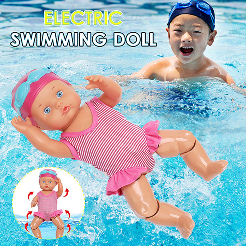 👧Den elektriska simdockan är vattentät, simmar bröstsim, svänger med benen, flyter på vattnet och leker med dina barn.